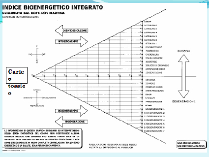 i seguenti indici: Il valore dell’età biolgiche si legge così: 15 × 3 indica che risuonano tre indici della scala del mesenchima e che il punteggio maggiore è 15. Il valore tre indica alla prima visita un buon livello di stress/fisico/psichico/immunologico, il valore quattro mostra uno stress maggiore che diventa importante con il punteggio cinque fino al sei che rappresenta il massimo e che si riscontra in persone con patologie molto importanti. Gli indici 2 e 1 sono ottimi compensi. Un'altra scala importante è quella introdotta dal Dott. Roy Martina; lui utilizza tre scale una per il grado di tossicità d'organismo/organo (Tox da 0 a 10), un'altra per lo stato di un'infiammazione o blocco (fino a + 15) e l'ultima per il livello di degenerazione(fino a – 15) . L’organismo può essere paragonato