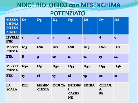 nella scala del mesenchima del paziente. Per conoscere quante età