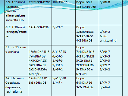 Ricordo che i valori registrati sono soggettivi e non possono essere pertanto confrontati con metodi di tipo biochimico, che permettono di dare dei dati certi e ripetibili. Il miglioramento dopo il trattamento con Lotus è stato clamoroso; spesso un trattamento, soprattutto i primissimi, equivale in termini di miglioramento dei punteggi a una cura di disintossicazione mirata portata avanti per almeno un paio di mesi. Quando poi ho rivisto i pazienti a distanza di un po' di tempo si è visto che in punteggi, pur non rimanendo così bassi come subito dopo il trattamento, erano comunque molto migliori rispetto a quello che otteneva con le cure prescritte. Il trattamento Lotus non può sostituire l'intervento del medico e di terapie mirate specifiche alla risoluzione della patologia ma comunque è un presidio molto utile per accelerare i tempi della cura ed è molto consigliabile per mantenere pulito il mesenchima e le cellule stesse, permettendo di fare un'opera di prevenzione delle malattie e va inserito nel contesto dei consigli per un comportamento corretto atto a prevenire le problematiche a cui potremmo andare incontro considerando la nostra diatesi familiare/genetico.